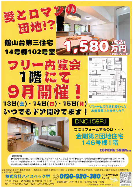 2025.09.12 《明日から3日間》鶴山台第三住宅 オープンハウス開催♪ 今月もやります! 鶴 山 台 第 三 住 宅 14 号棟 \オープンハウス開催!/ 9/13(土)・14(日)・15(月・祝)の3日間 午前10時~午後4時 フルリノベーションでお洒落になったお部屋を是非ご覧下さい! 「リフォームしたらどんな感じになるの?」 「ちょっとだけ見てみたい!」「前も見に行ったんだけど、また行っていい?」 大 歓 迎 で す!! ご興味がございましたら、是非お越しください! 事前のご予約は不要ですいつでもドア開けてます! ご近所お友達をお誘い合わせの上、いらっしゃってください♪ リフォームのご相談も承ります! 住まいの疑問・お悩みをこの機会に解消しませんか? 実際にリフォームしたお部屋を見ながら、ご相談いただけます オープンハウス以外のお日にちでもご案内可能です♪ お気軽にお問合せください!